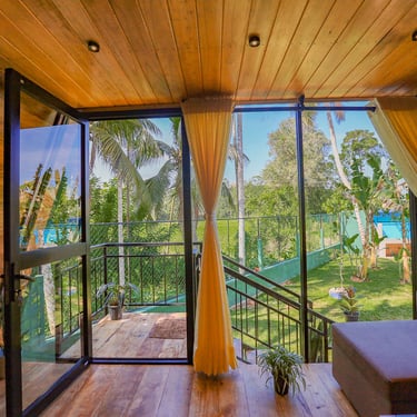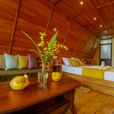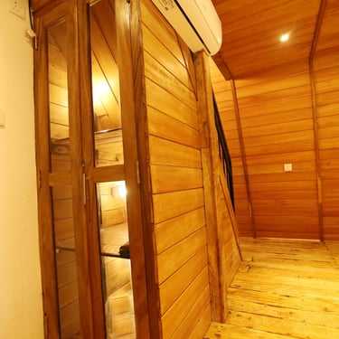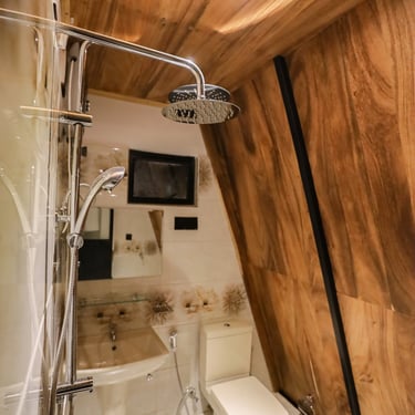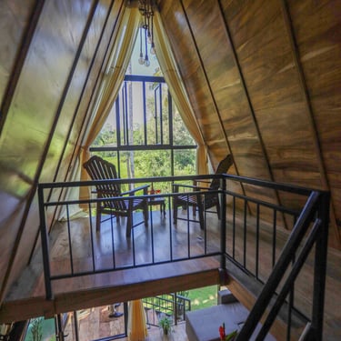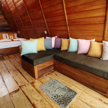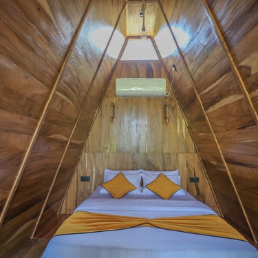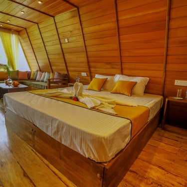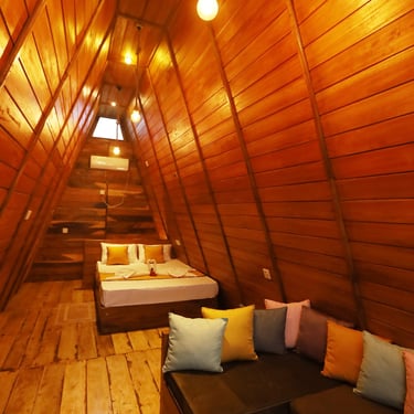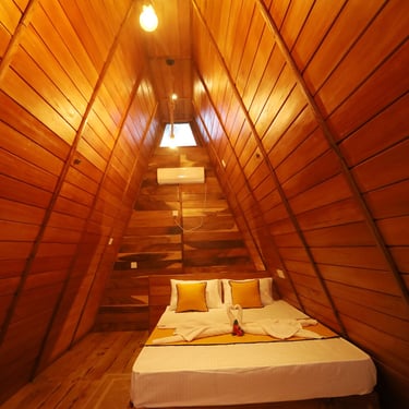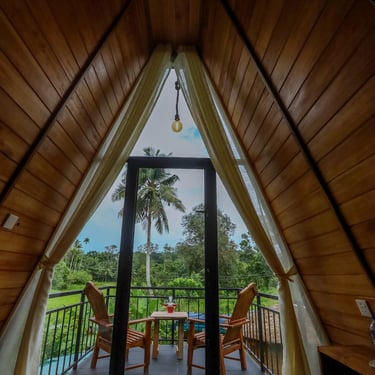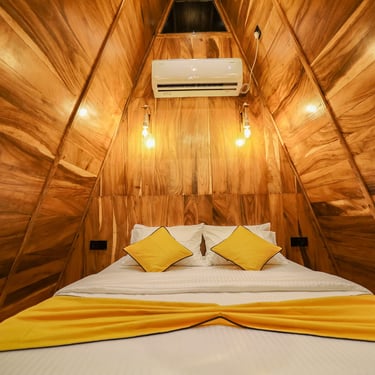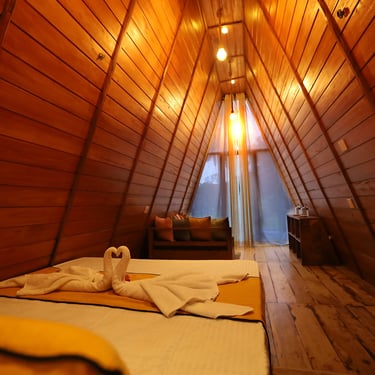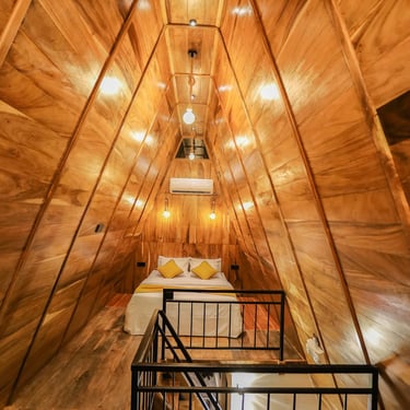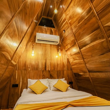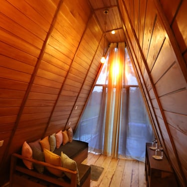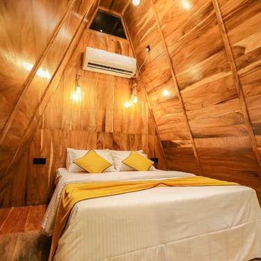This little retreat is more than just a space-it is a feeling. Calm, cool and deeply connected to nature, the A-frame cabana offers a quiet escape from the noise of the world, where every sunrise feels little……… and every breeze carries the scent of green life.